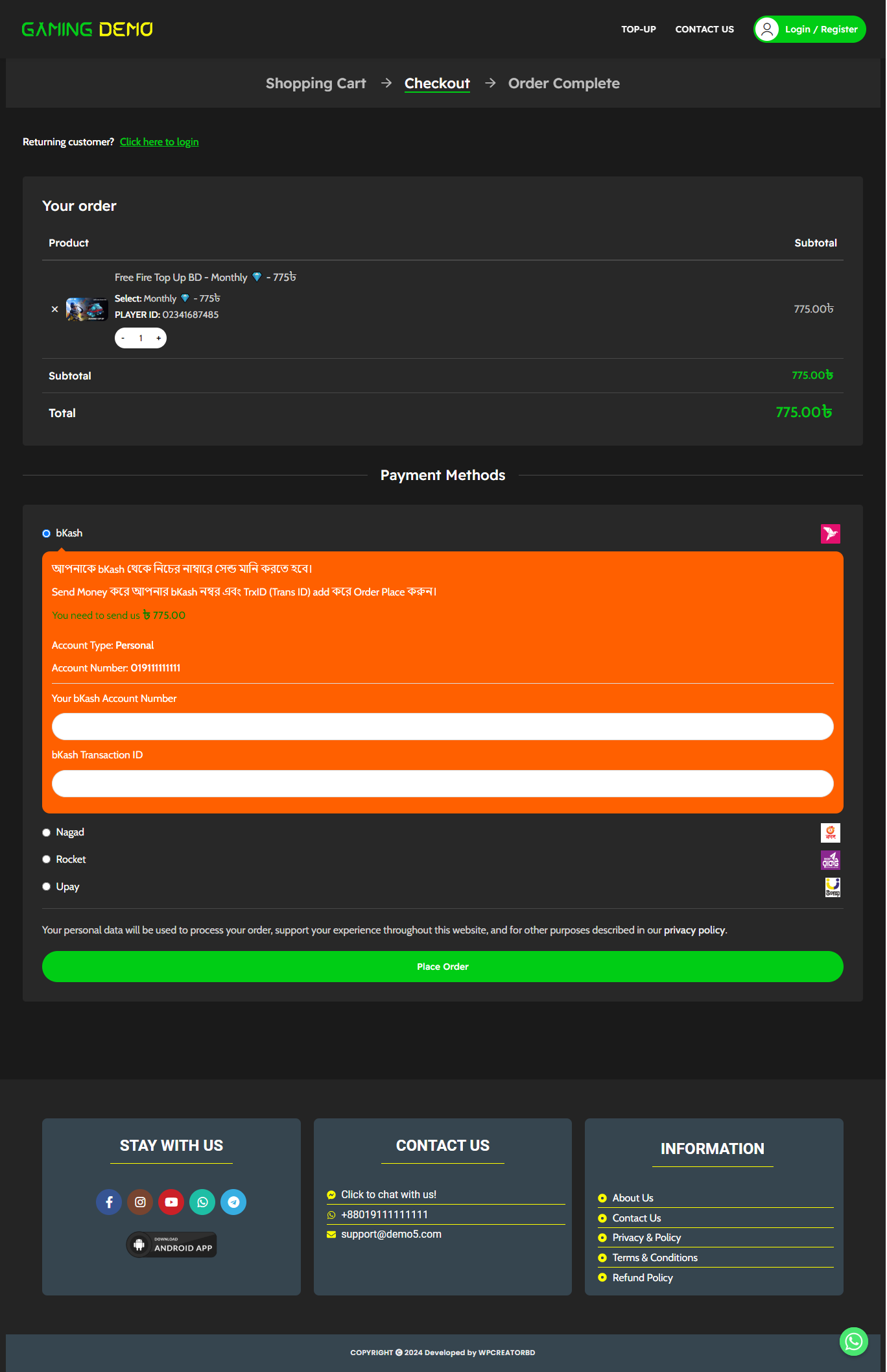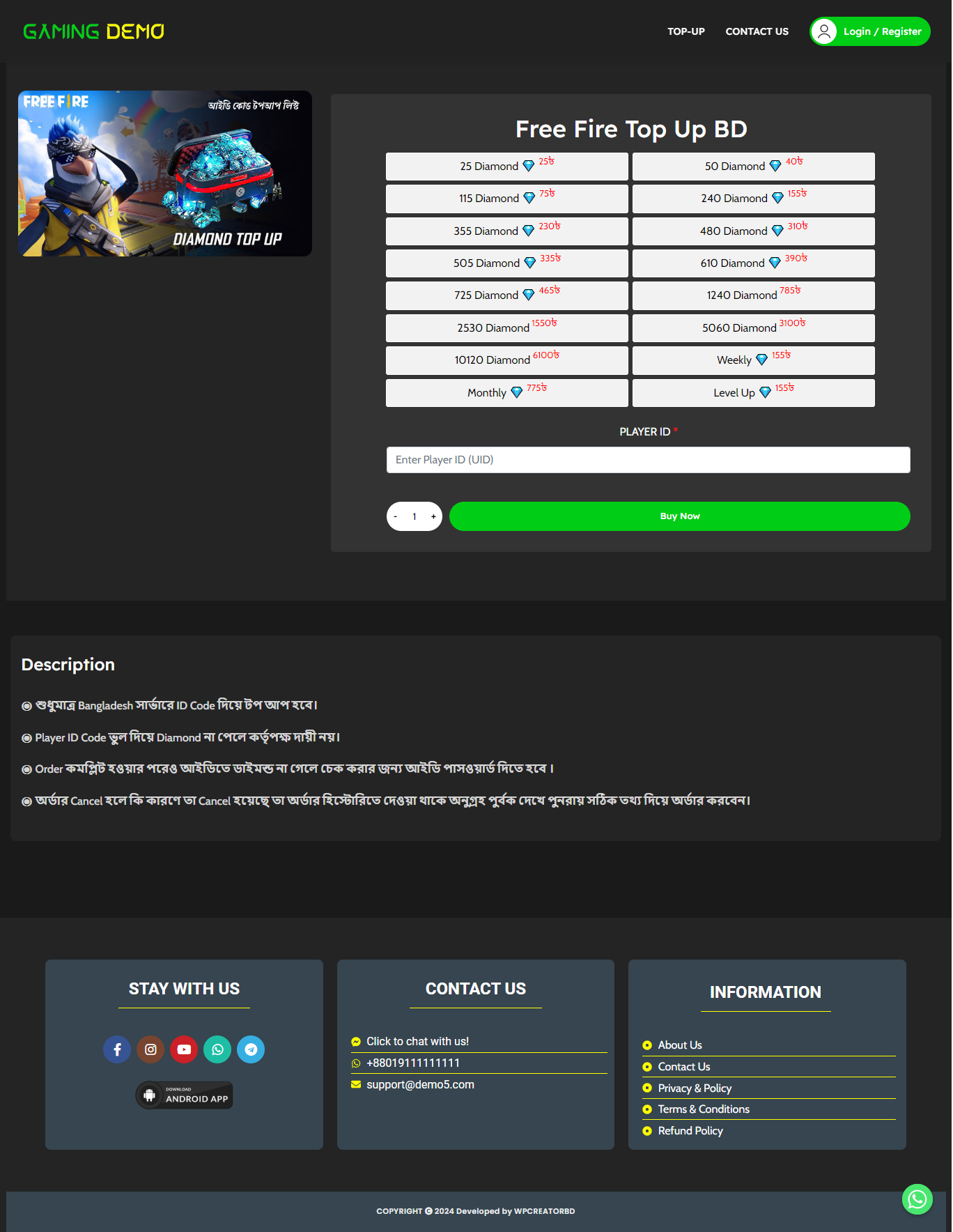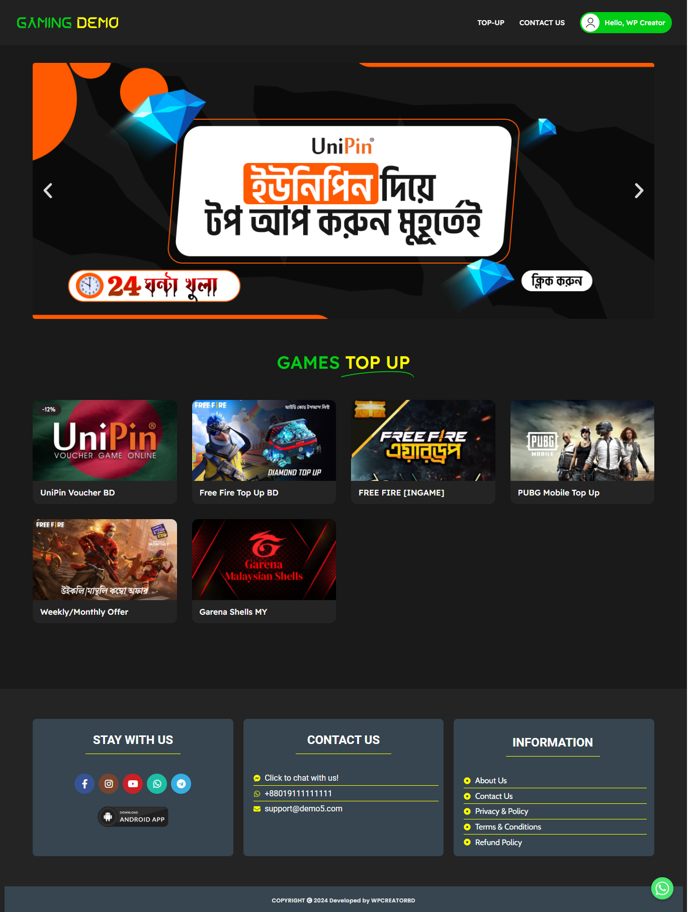 (Demo-5) Free Fire, Pubg, Games Top Up, Voucher, Gift Card Selling Ready Made Website Code